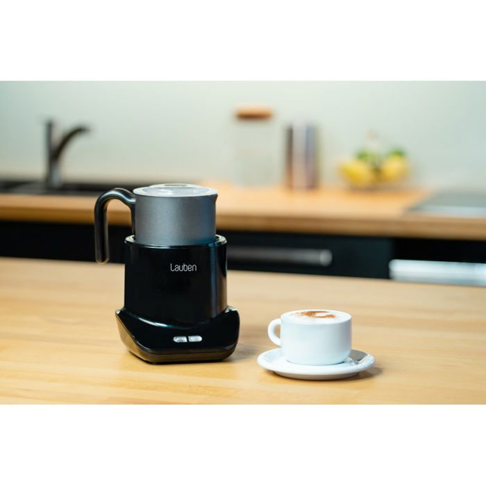 Lauben Milk Frother 550BC je dodatak koji morate imati za sve ljubitelje kave s bogatom i kremastom pjenom. S ovom pjenilicom za mlijeko stvorit ćete savršenu pjenu i uštedjeti na odlasku u kafić svaki put kada vas primami okus bogate bijele kave ili cappuccina. Pjenilica radi u tri različita načina, tako da možete birati između vruće pjene od punomasnog mlijeka za ukusan cappuccino, hladne za ljetne mliječne koktele ili zagrijavanja kakao mlijeka za vaše mališane. Pjenilica za mlijeko sastoji se od baze i posude za grijanje. Baza je opremljena nožicama protiv klizanja i sustavom od 360°, uz pomoć kojeg možete postaviti posudu za grijanje na nju u bilo kojem smjeru. Lonac za grijanje ima neljepljivu površinu kako bi se spriječilo lijepljenje ili habanje. Zahvaljujući tehnologiji indukcijskog zagrijavanja, mlijeko se nikada ne zgrušava. Dodatak za pjenjenje također ima zaštitu od pregrijavanja, tako da možete biti sigurni da će mlijeko ili pjena uvijek imati pravu temperaturu od 60-75 °C. Nećete niti morati brinuti o održavanju, jer grijaću posudu možete jednostavno oprati u perilici posuđa. Šlag na torti je vrhunski dizajn brenda Lauben koji se uklapa u svaku kuhinju.