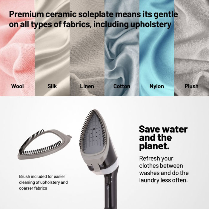 Za sve vrste tkanina Naše glačalo na paru održavat će vašu odjeću, tapecirani namještaj, zavjese i druge kućne tkanine glatkima i svježima;