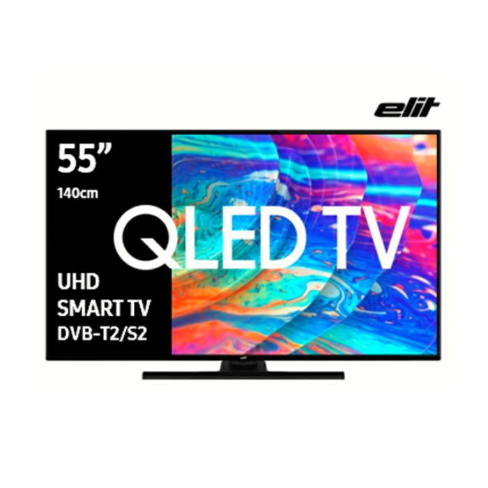 Elit Q-5522UHDTS2 QLED televizor Dijagonala: 55" (139 cm) Rezolucija: 3840 x 2160 (4K Ultra HD) QLED Quantum Dots tehnologija Smart TV Podržava: OK Google Ugrađen WiFi, Bluetooth , LAN port Dolby ATMOS, Dolby Vision, DTS, HDR+ Tuner: DVB-T / T2, DVB-S2 / DVB-C / HEVC H.265 Kontrast: 1200:1 - 1300:1 Svjetlost: 250 - 350 cd / m2 Povezivanje: USB, HDMI x3, AV, SPDIF, HEADPHONES, CI+ Energy class: F Hotel mode Dimenzije televizora (s postoljem): 228 x 1283 x 758 mm Dimenzije televizora (bez postolja): 32/66 x 1233 x 711 mm