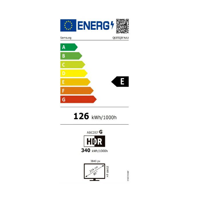 ZASLON Veličina zaslona: 85" Rezolucija: 4K (3,840 x 2,160) Frekvencija osvježavanja: 50Hz VIDEO Picture Engine: Q4 AI Processor HDR (High Dynamic Range): Quantum HDR+ HDR 10+: Da (ADAPTIVNO) Auto HDR Remastering: N/A Kontrast: Dual LED Kut gledanja: N/A Micro Dimming: Supreme UHD Dimming Enhancer kontrasta: Da Tehnologija pokreta: Motion Xcelerator Smart Calibration: Osnovno Uspon slike: 4K Upscaling AI Motion Enhancer: N/A Supersize Picture Enhancer: N/A HDR Brightness Optimizer: Da Color Booster: Color Booster Pro Filmmaker Mode: Da EyeComfort Mode: Da ZVUK Dolby Atmos: N/A Object Tracking Sound: OTS Lite Q-Symphony: Da Audio Pre-selection Descriptor: Da Izlaz zvuka (RMS): 20W Tip zvučnika: 2CH Aktivni pojačivač glasa: Da SMART SERVISI Operativni sustav: Tizen™ Smart TV Bixby: Da Far-Field Voice Interaction: Da Ugrađeni glasovni asistent: Alexa (GB, DE, FR, IT, ES, AT, IE) Kompatibilno s AI zvučnicima: Alexa (GB, DE, FR, IT, ES, AT, IE), Google Assistant (GB, FR, DE, IT, ES, CH, AT, NL, SE, NO, DK, FI, PT, IE, BE, LU) Samsung TV Plus: Da (GB, FR, DE, IT, ES, CH, AT, NL, SE, NO, DK, FI, PT, IE, BE, LU) Web preglednik: Da SmartThings Hub / Matter Hub / IoT-Sensor funkcionalnost / Quick Remote: Da Samsung Health: Da (samo GB, IE) Univerzalni vodič: Da (GB, FR, DE, IT, ES) SMART ZNAČAJKE Multi Device Experience: Mobilni uređaj na TV, TV inicira zrcaljenje, Sound Mirroring, Bežični TV On, Tap View Multi-View: Do 2 videa Apple AirPlay: Da (osim za Aland Islands, Faroe Islands, Netherlands Antilles, San Marino) Daily+: Da Storage Share: Da Click to Search: Da (DE, GB, FR, ES, IT) Generative Wallpaper: Da Karaoke Mic: Da GAME ZNAČAJKE Auto Game Mode (ALLM): Da Game Motion Plus: Da Super Ultra Wide Game View: Da MiniMap Zoom: Da Hue Sync: Da (AT, BE, DK, FI, FR, DE, IT, NL, NO, PT, ES, SE, CH, GB) HGiG: Da Gaming Hub: Da (KR, US, CA, BR, GB, FR, DE, IT, ES, MX, AU) AI Auto Game Mode: Da TUNER/PRIJENOS Digitalno emitiranje: DVB-T2CS2 Analogni tuner: Da CI (Common Interface): CI+(1.4) / CI+(1.4 ECP)_IT only Podaci o emitiranju: HbbTV 2.0.4 (IT, GB, DE, CZ, SK, ES, PL, AT, FR, FI, EE, GR, SI, HR, BE, NL, LU, HU, CH, PT, DK, ME) TV ključ: Da POVEZIVOST Wi-Fi: Da (Wi-Fi 5) Bluetooth: Da (BT5.3) HDMI: 3 Maksimalna brzina ulaza za HDMI: 4K 60Hz (za HDMI 1/2/3) HDMI Audio Return Channel: eARC/ARC Anynet+ (HDMI-CEC): Da USB: 2 x USB-A Ethernet (LAN): 1 Digital Audio Out (Optical): 1 RF In (Terrestrial / Cable input / Satellite input): 1/1 (Zajedničko za Terrestrial)/1 DIZAJN Dizajn: AirSlim Tip okvira: 3 Bezel-less Boja prednje strane: Titan siva Tip stalka: Aero Linear Boja stalka: Crna DIMENZIJE Dimenzije pakiranja (ŠxVxD): 2059 x 1200 x 171 mm Dimenzije televizora sa stalkom (ŠxVxD): 1900,9 x 1141,9 x 365,6 mm Dimenzije televizora bez stalka (ŠxVxD): 1900,9 x 1086,1 x 26,9 mm Dimenzije stalka (Osnovni) (ŠxD): 1420 x 365,6 mm Dimenzije stalka (Minimalni) (ŠxD): 370 x 365,6 mm VESA specifikacija: 600 x 400 mm TEŽINA Težina pakiranja: 52,9 kg Težina televizora sa stalkom: 41,3 kg Težina televizora bez stalka: 40,4 kg