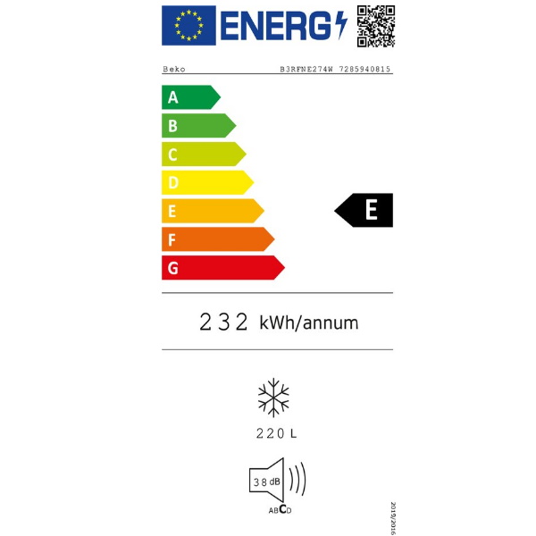 Beko B3RFNE274W NeoFrost ledenica Promjenjiv smjer otvaranja vrata SmoothFit vrata Kapacitet: 220 l Fast Freeze funkcija Kapacitet zamrzavanja: 13 kg / 24 h Displej na vratima Elektronske kontrole Energetska klasa: E Godišnja potrošnja struje: 226,33 kWh Razina buke: 38 dBA Klimatska klasa: SN-T Visina: 151.5 cm Širina: 59.7 cm Dubina: 75.4 cm Težina: 60 kg Boja: bijela