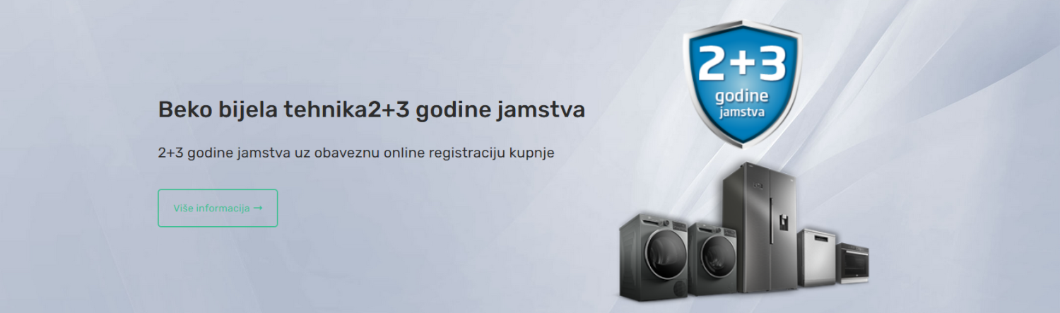 Beko bijela tehnika | 2+3 godine jamstva Aparate je potrebno registrirati putem ovog obrasca najkasnije 30 dana od datuma kupnje. Kliknite na ikonu za detalje