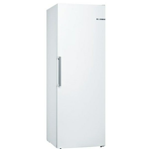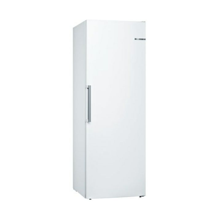 Bosch GSN58AWEV Ledenica NoFrost razreda A++ s tehnologijom FreshSense Vrata: bijela boja, stranice: bijele Vertikalna ručka, aluminij LED osvjetljenje unutrašnjosti NoFrost Elektronička regulacija temperature s digitalnim prikazom Aktivni sigurnosni sistem Multi sigurnosni sustav s funkcijom pamćenja, zvučnim signalom kod otvorenih vrata FreshSense - konstanta temperatura zahvaljujući tehnologiji inteligentnog senzora Prostor za zamrzavanje: 365 l Učinak zamrzavanja: 22 kg/24 h Pohranjivanje u slučaju kvarova: 25 h Multi Airflow-System Posudica za kockice leda VarioZone - odstranjive police od sigurnosnog stakla za dodatan prostor Br. prozirnih ladica za zamrzavanje: 5, od toga 1 BigBox Dimenzije (V x Š x D): 191 x 70 x 78 cm Desno otvaranje vrata, podesivo Sprijeda noge podesive po visini, straga kotačići Kut otvaranja vrata 90° Priključna snaga: 120 W Napon: 220-240 V 2 x Rashladni akumulator, 1 x Posuda za ledene kocke Neto težina: 92,853 kg Zemlja porijekla: Poljska