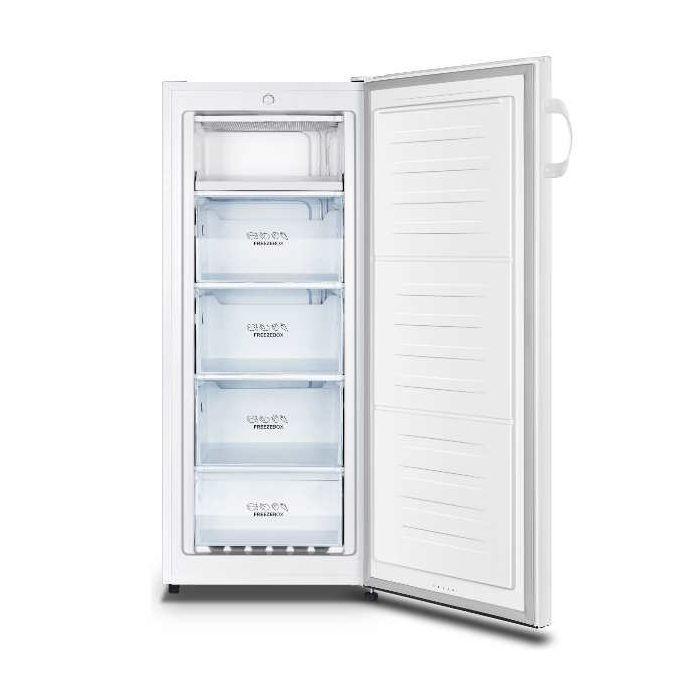 Samostojeći Primary Line Energetski razred: E Energetski razred buke: C Boja aparata: bijela Boja vrata: bijela Otvaranje vrata: desno promjenjivo 2 kotačića / 2 podesive noge Ukupni volumen: 165 l Obujam zamrzivačkog dijela: 165 l Kapacitet zamrzavanja u 24 sata: 7.601 kg Vrijeme čuvanja u slučaju nestanka el.energije: 20 h Procijenjena godišnja potrošnja električne energije: 188 kWh Vrsta upravljanja: mehaničko Štedljivi program EcoMode Rashladna tekućina: R600a Polaganje aparata: dopušteno Skriveni kondenzator Broj neovisnih rashladnih sustava: 1 Broj kompresora: 1 kompresor Širina proizvoda: 550 mm Visina proizvoda: 1434 mm Dubina proizvoda: 542 mm Neto težina proizvoda: 43.5 kg
