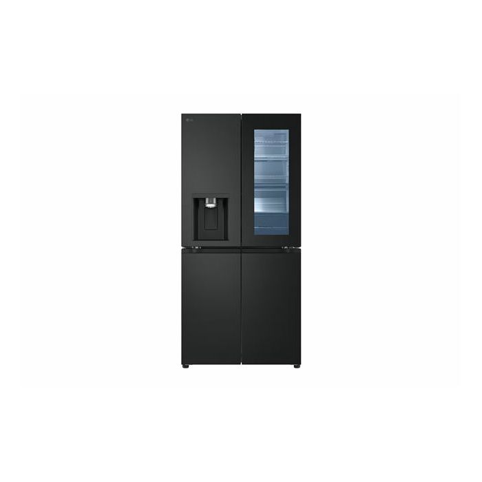 LG hladnjak GMG860EPBE - InstaView™ hladnjak s četiri vrata, DoorCooling+™ i ThinQ™ tehnologija, kapacitet 508L=288L+220L. Nova razi na hlađenja uz LINEAR Cooling™ i Door Cooling™, Pure N FRESH smanjuje neugodne mirise putem sustava filtera zraka koji sadrže ugljen čime održava svježinu zraka. UVnano™, Pametan sustav skladištenja, Uvučena ručka, Dizajn metalnih dovoda zraka, Moderan Dispenze, Inverter Linear Compressor™, Unutarnji LED zaslon, Express zamrzavanje, Dozator za led i vodu - led u kockicama i drobljeni led, ThinQ (Wi-Fi), Smart Diagnosis. Osnovne karakteristike: Boja: Crna Neto zapremina hladnjaka [l]: 288 Obujam zamrzivača neto [l]: 209 Buka: 40