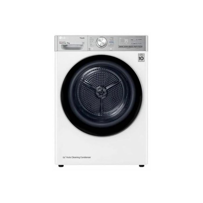 LG sušilica rublja RH80V9AV3N 8 kg - Sušilica toplinske pumpe ,Kondenzator s automatskim čišćenjem, 14 programa, Odgoda početka pran ja(3 - 19h), LED display / Okretna vrata, WiFi, Kut otvaranja vrata 180° ,Smart Diagnosis™, Odvod vode putem posude ili crijeva za odv od, 10godina jamstva na D.D. Osnovne karakteristike: Energetski razred: A++ Kapacitet [kg]: 8 Vrsta: Kondenzacijska Broj programa: 14 Boja: Bijela