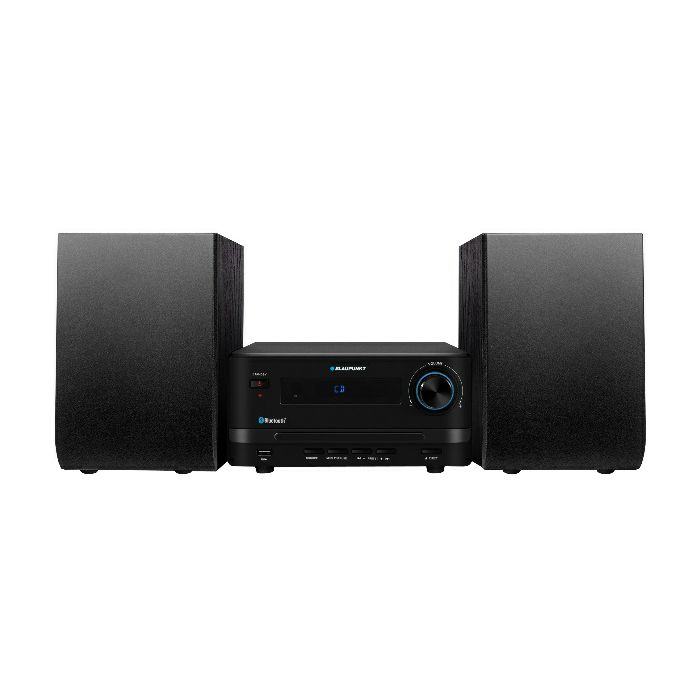 Blaupunkt MS14BT Glazbeni micro system CD uređaj s MP3 reprodukcijom i podrškom za CD / -R / -RW / MP3 Bluetooth za bežično strujanje zvuka sa pametnog telefona ili računala FM PLL radio s 30 unaprijed postavljenih memorija USB priključak za reprodukciju glazbe Maks. izlazna snaga: 45 W (2x22,5W) Izlazna snaga: 15 W RMS (2x7,5W) Ekvilajzer LED zaslon Daljinski upravljač Napajanje: AC 100-240 V ~ 50/60 Hz Dimenzije glavne jedinice: 220 (š) x 102 (v) x 238 (d) mm Dimenzije zvučnika: 140 (š) x 210 (v) x 186 (d) mm Težina: 4 kg