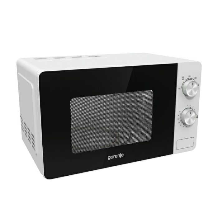 Gorenje MO20E1W Dizajn/Boja: Bijela boja Lakirana unutrašnjost Materijal vrata: Staklo Materijal prednje ploče: Lakirani metal Otvaranje vrata: Gumb Otvaranje vrata: Lijevo otvaranje vrata Volumen pećnice: 20 l Broj stupnjeva snage: 5 Snaga mikrovalova: 800 W Tehnologija proizvodnje mikrovalova: Standardna tehnologija (HVT) Način emitiranja mikrovalova: Rotirajući tanjur Mehaničko upravljanje Način upravljanja: Gumb Način(i) zagrijavanja: Mikrovalovi AquaClean funkcija Sigurnosni prekidač Rotirajući stakleni tanjur Promjer rotirajućeg pladnja: 27 cm Dimenzije aparata (ŠxVxD): 45,1 × 25,7 × 34,3 cm Dimenzije zapakiranog aparata (ŠxVxD): 48,2 × 29,4 × 38,6 cm Neto težina proizvoda: 10,9 kg Bruto težina proizvoda: 12,6 kg Potrošnja el. energije u StandBy režimu: 0,5 W Priključna snaga: 1.280 w Osigurač: 8 A