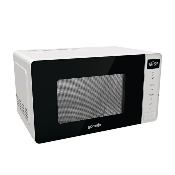 Gorenje MO20S4W Dizajn/Boja: Bijela boja Lakirana unutrašnjost Materijal vrata: Staklo Materijal prednje ploče: Staklena prednja ploča Otvaranje vrata: Gumb Otvaranje vrata: Lijevo otvaranje vrata Volumen pećnice: 20 l Broj stupnjeva snage: 5 Snaga mikrovalova: 800 W Broj infra grijača: 1 Snaga grila (gornji infra grijač): 1.000 W Tehnologija proizvodnje mikrovalova: Standardna tehnologija (HVT) Način emitiranja mikrovalova: Rotirajući tanjur Elektronsko upravljanje Način upravljanja: Upravljanje na dodir Prikaz vremena SmartControl pametno upravljanje Mogućnost isključivanja zaslona Zvučni signal: Mogućnost isključivanja Raspon timera (min): 60 min Načini zagrijavanja: Gril, mikrovalovi Broj kombinacija: 2 Broj gril programa: 1 Način(i) zagrijavanja: Mikrovalovi + gril Funkcija odmrzavanja po vremenu ili težini AquaClean funkcija AUTO meni Broj prednamještenih programa: 11 Prednamješteni programi kuhanja Zaštita od djece Sigurnosni prekidač Rotirajući stakleni tanjur Promjer rotirajućeg pladnja: 27 cm Rešetka za gril Tip grijača: Quartz Dimenzije aparata (ŠxVxD): 45,1 × 25,7 × 34,3 cm Dimenzije zapakiranog aparata (ŠxVxD): 48,2 × 29,4 × 38,6 cm Neto težina proizvoda: 11,5 kg Bruto težina proizvoda: 13,3 kg Potrošnja el. energije u StandBy režimu: 1 W Priključna snaga: 1.280 w Osigurač: 8 A