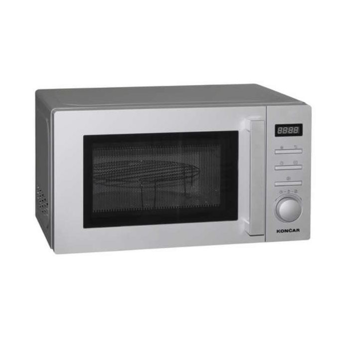 Končar M20SEG1 Mikrovalna pećnica Boja: srebrna Visina x Širina x Dubina (mm): 258x440x358 Kapacitet pećnice (l): 20 Nazivna mikrovalna snaga izlazna/ulazna (W): 700/1050 Gril grijač (W): 1000 Više razina mikrovalne snage Vrijeme pripreme hrane Funkcija odleđivanja LCD zaslon Promjer tanjura (mm): 255 Neto težina (kg): 10,7