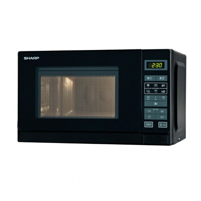 Sharp R242BKW Mikrovalna pećnica Digitalno upravljanje, touch kontrole Kapacitet: 20 l Boja: crna Snaga: 800 W 11 razina snage 8 programa Funkcija odmrzavanja Digitalni display sa timerom i satom Funkcija odmrzavanja Sigrunosno zaključavanje ECO funkcija Dimenzije: 44 x 36 x 26 cm Težina: 12 kg