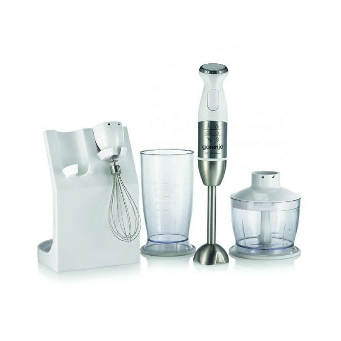 Materijal: plastika, metal Boja: bijela Istosmjerni motor za ekonomičnu i dugotrajnu upotrebu Snaga motora: 800 W Volumen posude za miješanje i posude za sjeckanje: 0,5 l Mjerna skala na spremniku za potpunu točnost doziranja Pulsni rad za kratke cikluse miješanja Jednostavno čišćenje Dužina priključnog kabela: 1,3 m Metalni štap za sjeckanje, pjenjača – jednostruka, zdjela za miješanje, sjeckalica sa zdjelom i postoljem