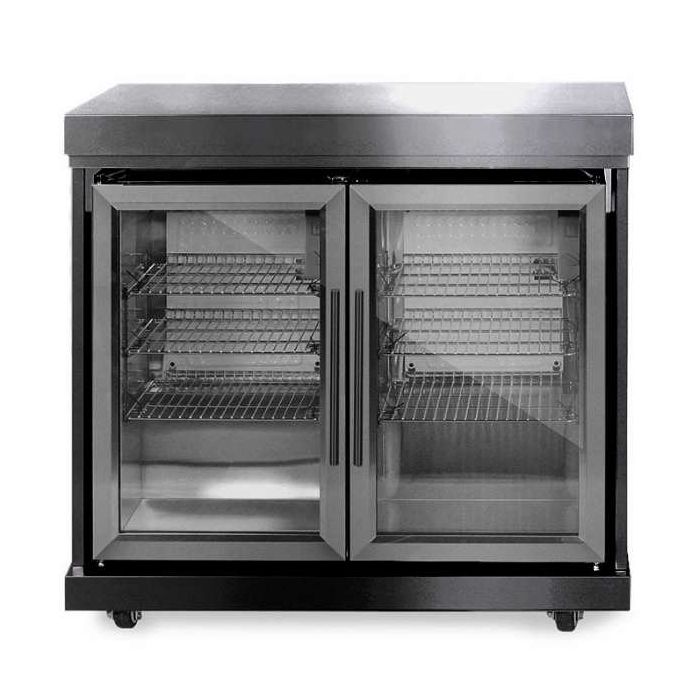EAN: 7330066076484 Mjere (Š x V x D) (visina i dubina gornje ploče): 96 x 90,5 x 58 (90,5 x 58) cm Čelik: Black SS 304 Dva odvojena hladnjaka, temperatura: 3-10 °C, unutarnje osvjetljenje