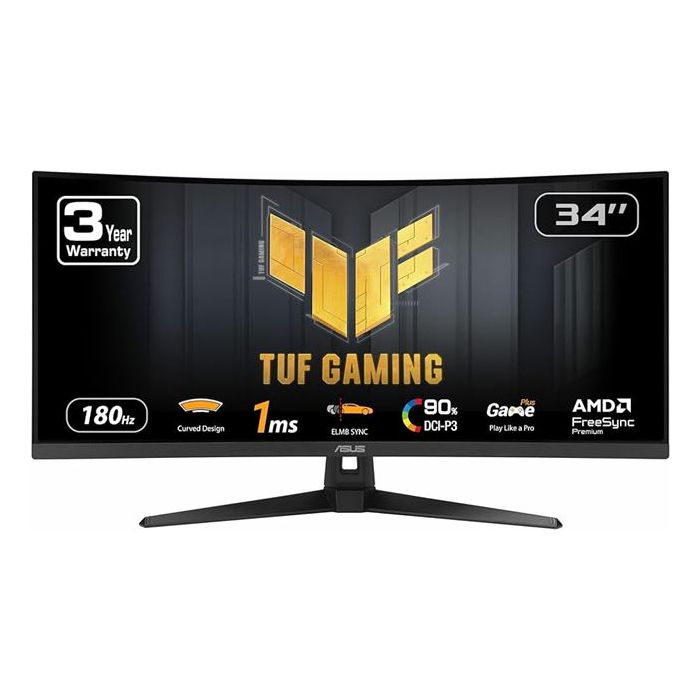 MON 34 AS TUF VG34VQ3B Osnovne karakteristike: Dijagonala: 34 Format ekrana: 21:9 Panel: VA Maksimalna rezolucija: 3440x1440 Svjetlina: 400 Kontrast: 4 Vidljivi kut (hor.): 178 Vidljivi kut (ver.): 178 Vrijeme odziva: 1 Priključci: HDMI x2, DP x2, 3,5 mm Audio Jack, USB 3.2 x4