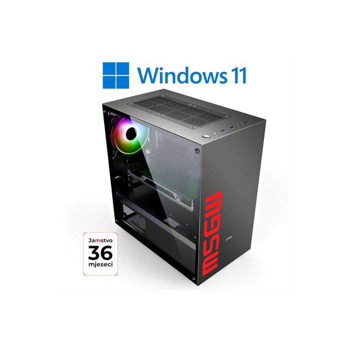 MSGW Gamer a373 bazirano je na AMD Ryzen™ 5 5500 procesoru imatičnojploči sa AMD B550 chipsetom. Uz navedeno tu je i snažna grafičkakartica NVIDIA GeForce RTX 3060 12GB, 16GB brze DDR4 memorije ,brzi M.21TB SSDdisk. Tu je sve što vam treba da bi uplovili u svijet gaminga. Osnovne karakteristike: OS: Windows 11 Home CPU tip: AMD Ryzen™ 5 CPU brand: AMD CPU model: 5500 CPU brzina [GHz]: 3,60 L2 Cache: 3 MB L3 Cache: 16 MB Chipset: AMD B550 Socket: AM4 Količina memorije: 1x 16 GB Tip memorije: DDR4 Takt memorije [MHz]: 3200 Broj memorijskih utora: 2 Maksimalna količina memorije [: 64 Grafička kartica: NVIDIA GeForce Model grafičke kartice: RTX 3060 12GB GDDR6 Tip diska: M.2 PCIe Veličina diska [GB]: 1000 Broj okretaja diska: n/a Optički uređaj: Nema Zvučna kartica: 8-kanalna Mrežna kartica - brzina [Mbit]: 1 Gbit/s WLAN mreža: Ne Utori za proširenje: 1x PCIe 3.0 x1, 1x PCIe 4.0 x16 Interni konektori: 4x SATA III, 1x M.2 Socket 3, 2242/2260/228, 1x M.2 Socket 3, 2242/2260/228 Stražnji panel: 1x PS/2 mouse/keyboard combo, 1x HDMI, 1x RJ45, 2x USB 2.0, 3x Display port, 3x Audio konektor, 4x USB 3.2 Gen 1 Type-A Prednji panel: 1x USB 3.2 Gen 1 Type-A, 2x USB 2.0, Audio In/out Kućište - veličina: Mini Tower Napajanje [W]: 600 Ladica za uređaje 5,25" vanjsk: 0 Ladica za uređaje 3,5" vanjska: 0 Ladica za uređaje 3,5" interna: 2 Ladica za uređaje 2,5" interna: 2 Miš: Ne Tipkovnica: Ne Zvučnici: Ne