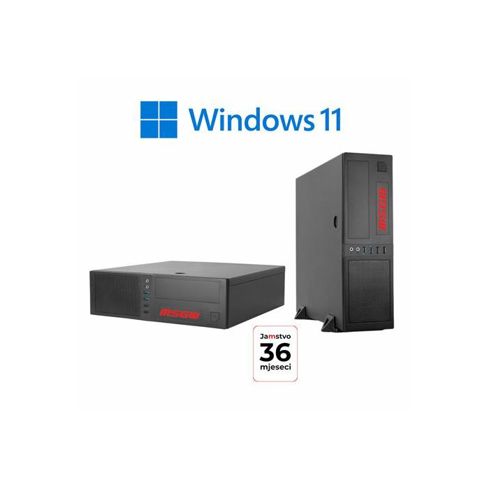 Računalo MSGW Office i200 serije projektirano je za visoke performanse uz smanjenu potrošnju energije. MSGW Office serija računala namijenjena je prvenstveno poslovnim korisnicima, no vjerujemo da će pronaći svoje mjesto i kod kućnih korisnika. Bazirano je na Asus matičnoj pločisa Intel chipsetom i Intel procesoru.Osigurat će vam siguran rad kako u poslovnom tako i u kućnom okruženju, uz visoke performanse. Osnovne karakteristike: OS: Windows 11 Pro CPU tip: Intel® Core™ i5 CPU brand: Intel CPU model: 12400 CPU brzina [GHz]: 2,50 L2 Cache: 7,5 MB L3 Cache: 18 MB Chipset: H610 Socket: 1700 Količina memorije: 1x 16 GB Tip memorije: DDR5 Takt memorije [MHz]: 5600 Broj memorijskih utora: 2 Maksimalna količina memorije [: 64 Grafička kartica: Integrirana Model grafičke kartice: Intel UHD Graphics 730 Tip diska: M.2 PCIe Veličina diska [GB]: 1000 Broj okretaja diska: n/a Optički uređaj: Nema Zvučna kartica: 8-kanalna Mrežna kartica - brzina [Mbit]: 1 Gbit/s WLAN mreža: Ne Utori za proširenje: 1x PCIe 3.0 x1, 1x PCIe 4.0 x16 Interni konektori: 4x SATA III, 1x M.2 Socket 3, 2242/2260/228 Stražnji panel: 1x PS/2 Keyboard, 1x PS/2 Mouse, 1x HDMI, 1x DisplayPort, 1x VGA, 1x RJ45, 2x USB 2.0, 2x USB 3.2 Gen 2 Type-A, 3x Audio konektor Prednji panel: 2x USB 2.0, 2x USB 3.2 Gen 1 Type-A, Audio In/out Kućište - veličina: Small Form Factor Napajanje [W]: 300 Ladica za uređaje 5,25" vanjsk: 1 Ladica za uređaje 3,5" vanjska: 1 Ladica za uređaje 3,5" interna: 1 Ladica za uređaje 2,5" interna: 1 Miš: Ne Tipkovnica: Ne Zvučnici: Ne