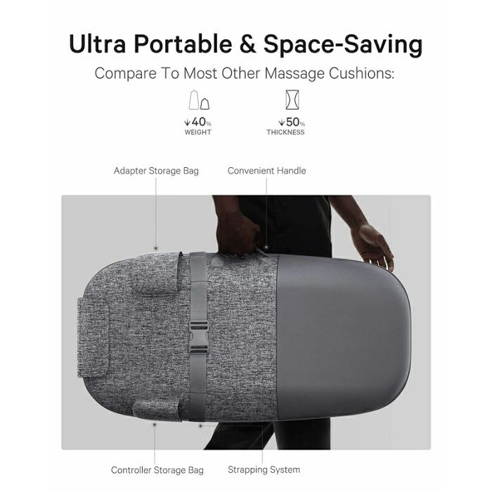 - Štedi prostor, prenosiv i jednostavan za pričvršćivanje na vašu omiljenu stolicu: prenosiv i lagan, možete ga ponijeti bilo gdje i uživati u masaži cijelih leđa, a opremljen je praktičnim sustavom za pričvršćivanje. Jednostavno ga pričvrstite na