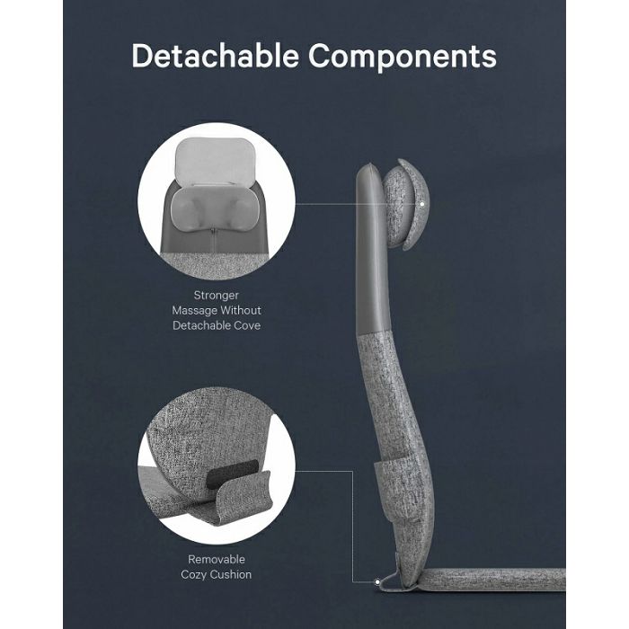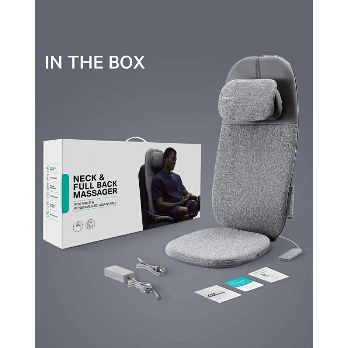- Iskustvo masaže cijelih leđa: Masažno sjedalo to pruža masažnim čvorovima koji prate obrise vrata, ramena i cijelih leđa, oponašajući masažu koja se izvodi na leđima, iskustvo shiatsu masaže gnječenjem. Ergonomski dizajn koji smanjuje opterećenje kralježnice i podupire lumbalni dio.