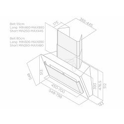 Belt Lux BL/A/80 PRF0102285 Napa Elica Energetska klasa: C Dimnjak inox 18/10 u isporuci Upravljanje: 3 brzine + booster Kontrole na dodir Rasvjeta: Halo 2x20 W Protok zraka (m3/h): 288-603 (691) Razina buke db(A): 50-68 (71) Tlak (Pa): 394 Ukupna snaga (W): 300 Promjer odvoda (mm): 150 Aluminijski fiter za masnoću Ugljeni fiter (opcja uz nadoplatu): CFC0038668 Crna