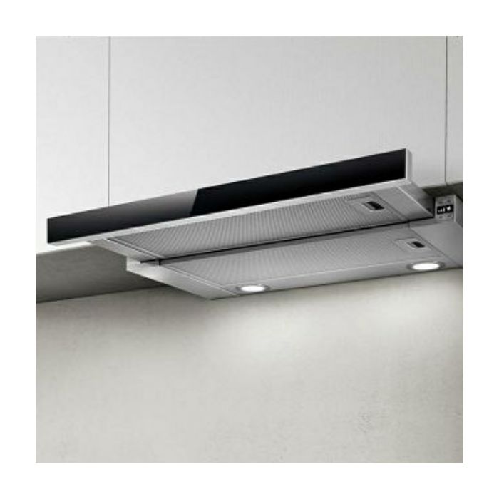 Veličina : 90 cm Opcije rada : Na odvod, filtrirajuća Završna obrada: Plemeniti čelik + crno staklo, plemeniti čelik Ravjeta Tip :Led 2×2,5 W Intenzitet:49 LUX Temperatura : 3500 K Upravljanje :3 brzine + booster komande na dodir, mehaničke komande sa 3 brzine (*) Int. protok zraka :581 m3/h Razina buke : 44 – 61 db(A) Ukupna snaga :180 W Promjer odvoda : 150 mm Energetski razred : C (A++/E) aluminijski filter za masnoću uključen u isporuku