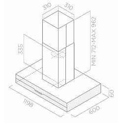 Meteorite Island IX/A/120x60Otočna napa ElicaVeličina: 120 x 60 cmZavršna obrada: nehrđajući čelik + crno stakloOpcija rada: na odvodUpravljanje: 3 razine + booster, komande na dodirRasvjeta: Strip Led 2x7w 2700-6000KInt. protok zraka: 757 m3/hProtok zraka motora: 950 m3/hMaks. razina buke: 59 db(A)Ukupna snaga: 324 WPromjer odvoda: 150 mmAluminijski filter za masnoćuEnergetska klasa: APRF0120971