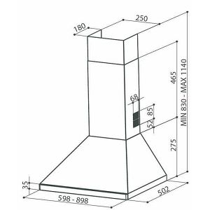 Napa Faber Strip PB X A60 Zidna napa Materijal: inox Elektromehaničko upravljanje Jedan motor Rasvjeta: žarulje 2 x 40 W Metalni kasetni filter periv u perilici posuđa Promjer odvoda zraka: 150 / 120 mm Širina nape: 600 mm 3 brzine Kapacitet usisa kod direktnog odvoda: 250 - 450 m3/h Glasnoća rada: 49 - 61 dB