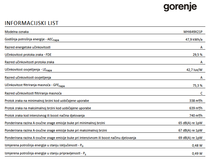 Boja: crno staklo /inox Energetski razred: A Tip konstrukcije: zidna Način rada: odvodnja ili recirkulacija zraka Razred učinkovitosti filtriranja masnoće: C Razred učinkovitosti osvjetljenja: A Razred učinkovitosti protoka zraka: A Snaga motora: 250 W Broj brzina: 4 Pojačan protok zraka (PowerBoost 1) - odvodnja: 740 m3/h Maksimalni protok zraka kod odvodnje zraka: 639 m3/h Maksimalni protok zraka kod recirkulacije: 380 m3/h Protok zraka kod odvodnje zraka, razina 1: 338 m3/h Protok zraka kod odvodnje zraka, razina 3: 639 m3/h Godišnja potrošnja energije: 47.9 kWh Upravljanje na dodir Timer funkcija Poklopac za jednosmjerni protok zraka: 150 mm Razina buke (max.): 67 dB(A) Širina proizvoda: 600 mm Visina proizvoda: 445 mm Dubina proizvoda: 335 mm Neto težina proizvoda: 13.5 kg