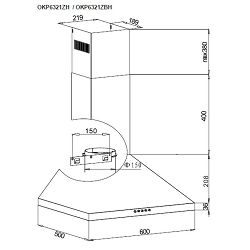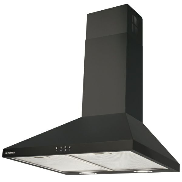 Hansa OKP6321ZBH Hansa kaminska napa širine 60 cm 2 LED svjetla (2 x 1,5W) 3 brzine 1 motor; Snaga izvlačenja: 470 (m3/h) Glasnoća pri max brzini: 63 db 2 aluminijska filtera za masnoću Boja: crna / inox
