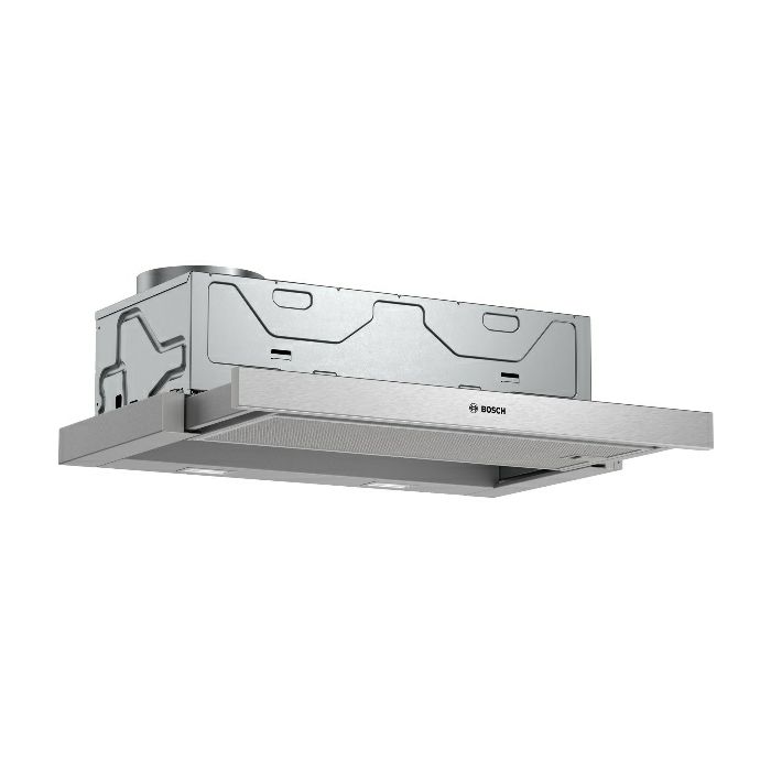 Bosch DFM064A53 Teleskopska kuhinjska napa, 60 cm Za ugradnju u viseći ormarić (širine 60 cm) Dvije mogućnosti rada: odvod zraka ili kruženje zraka (potrebno dokupiti komplet za recirkulaciju) Klasične tipke Elektronsko upravljanje, LED displej (svjetleće diode) Klasične tipke (4 stupnja učinkovitosti: 3 + intenzivni) Elektronsko upravljanje Klasične tipke 4 stupnja učinkovitosti: 3 + intenzivni Automatsko isključivanje intenzivnog stupnja 10-minutni pomak isključivanja Osvjetljenje polja za kuhanje: 2 x 1,5 W LED osvjetljenje Temperatura boje: 3500 K Intenzitet svjetla: 294 lux CMetalni filter za masnoće, prikladan za čišćenje u perilici posuđa Stupanj protoka ispušnog zraka prema standardu EN 61591 maksimalno 271 m3/h Buka min./maks. normalna razina: 49/62 dB Dimenzije (VxŠxD): 203 x 598 x 290 mm Ugradbene dimenzije (VxŠxG): 162 x 526 x 290 mm Cijev O 150 mm, 120 mm sa jednosmjernim zatvorivim poklopcem Električni kabel duljine 1.75 m Razred energetske učinkovitosti: A (na skali energetskih razreda od A++ do E) Godišnja potrošnja energije: 22.2 kWh/god Razred učinkovitosti protoka zraka: B Razred učinkovitosti osvjetljenja: A Razred učinkovitosti filtriranja masnoća: C Priključna snaga: 74 W Protok zraka pri najvećoj mogućoj brzini pri normalnoj uporabi: 271 m3/h; pri intenzivnoj uporabi: 405 m3/h (prema normi EN 61591) Protok zraka (odvod zraka) pri najvećoj mogućoj brzini pri normalnoj uporabi: 271 m3/h; pri intenzivnoj uporabi: 405 m3/h (prema normi EN 61591) Država porijekla: Njemačka