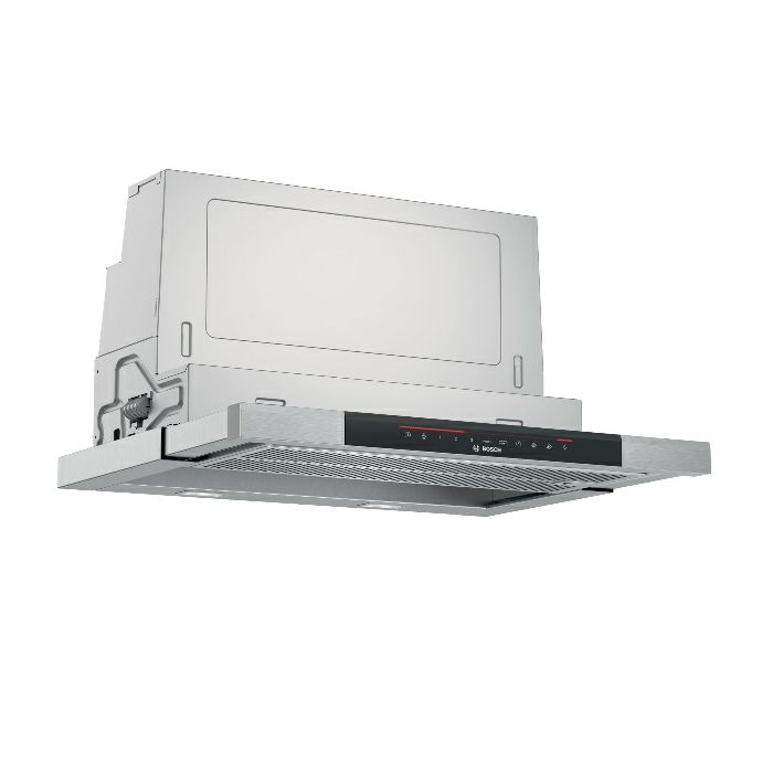 Bosch DFS067K51 Teleskopska kuhinjska napa, 60 cm Za ugradnju u viseći ormarić (širine 60 cm) Dvije mogućnosti rada: odvod zraka ili kruženje zraka (potrebno dokupiti komplet za recirkulaciju) TouchControl upravljanje Elektronsko upravljanje, Lightline TouchControl upravljanje (5 stupnja učinkovitosti: 3 + 2 intenzivne) 5 stupnja učinkovitosti: 3 + 2 intenzivne Automatsko isključivanje intenzivnog stupnja 10-minutni pomak isključivanja Senzor kvalitete zraka Osvjetljenje polja za kuhanje: 2 x 1,5 W LED osvjetljenje Mogućnost podešavanje intenziteta osvjetljenja Postupno osvjetljivanje/zatamnjivanje SoftLight Temperatura boje: 3500 K Intenzitet svjetla: 294 lux Poklopac filtera od nehrđajućeg čelika, prikladan za čišćenje u perilici posuđa Metalni filter za masnoće, prikladan za čišćenje u perilici posuđa Indikator zasićenosti filtra (metalnoga ili ugljenoga) Stupanj protoka ispušnog zraka prema standardu EN 61591 maksimalno 392 m3/h Buka min./maks. normalna razina: 41/53 dB S kompletom za recirkulaciju Clean Air Plus (dostupan kao dodatna oprema) vaša napa postiže: Brzina ekstrakcije u načinu recirkulacije: pri najvećoj mogućoj brzini pri normalnoj uporabi: 358 m3/h pri intenzivni uporabi: 628 m3/h Buka (kruženje zraka): pri najvećoj mogućoj brzini pri normalnoj uporabi: 60 dB(A) re 1 pW pri intenzivnoj uporabi: 71 dB(A) re 1 pW EcoSilenceDrive motor Dimenzije (VxŠxD): 426 x 598 x 290 mm Ugradbene dimenzije (VxŠxD): 385 x 524 x 290 mm Cijev O 150 mm, 120 mm sa jednosmjernim zatvorivim poklopcem Električni kabel duljine 1.75 m Razred energetske učinkovitosti: A (na skali energetskih razreda od A++ do E) Godišnja potrošnja energije: 37.9 kWh/god Razred učinkovitosti protoka zraka: B Razred učinkovitosti osvjetljenja: A Razred učinkovitosti filtriranja masnoća: B Priključna snaga: 144 W Protok zraka pri najvećoj mogućoj brzini pri normalnoj uporabi: 392 m3/h; pri intenzivnoj uporabi: 717 m3/h (prema normi EN 61591) Protok zraka (odvod zraka) pri najvećoj mogućoj brzini pri normalnoj uporabi: 392 m3/h; pri intenzivnoj uporabi: 717 m3/h (prema normi EN 61591) Država porijekla: Njemačka