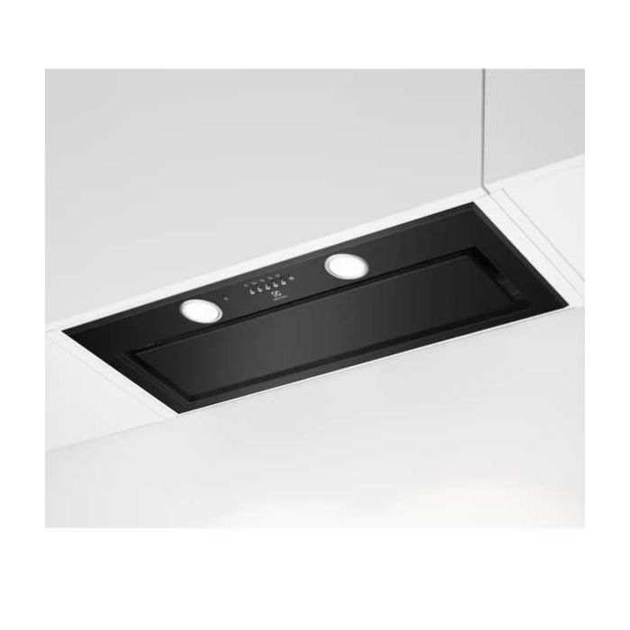 Electrolux LFG719R Ugradbena napa 700 Hob2Hood Širina: 80 cm Boja: crna Energetska klasa: A H2H kontrola nape putem ploče Upravljanje elektroničkim prekidačima 3+1 brzine (3x standardne + 1x intenzivno) Max. usis: 580 m3/h 1 motor Način rada:: odvod ili kruženje (zahtjeva ugradnju ugljenog filtera mirisa) Uključeni filteri: 2x filter masnoće INOX Aluminium Cassette Opcionalni filteri (ne dolaze uz proizvod): 1x ugljeni filter mirisa - ECFB01 Indikatori zapunjenosti filtera masnoče i ugljenog 2 LED svijetla Dimenzije nape u cm: V 331 x Š 770 x D 300