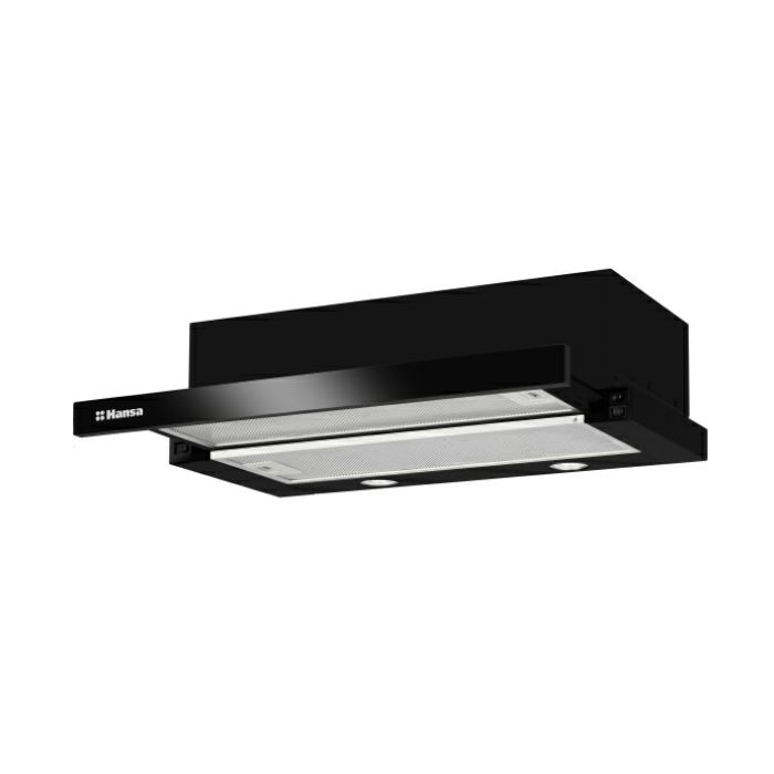 Hansa OTP6243BGH Hansa teleskopska napa 60 cm 2 LED svjetla (4W) 3 brzine AUTO START funkcija 1 motor Snaga izvlačenja: 389 (m3/h) Glasnoća pri max brzini: 65 db 2 aluminijska filtera za masnoću