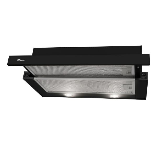 Hansa OTP6243BH Teleskopska napa širine 60 cm 2 LED svjetla (4W) 3 brzine Auto start funkcija 1 motor Snaga izvlačenja: 278 (m3/h) Glasnoća pri max brzini: 65 db 2 aluminijska filtera za masnoću Boja: crna / inox