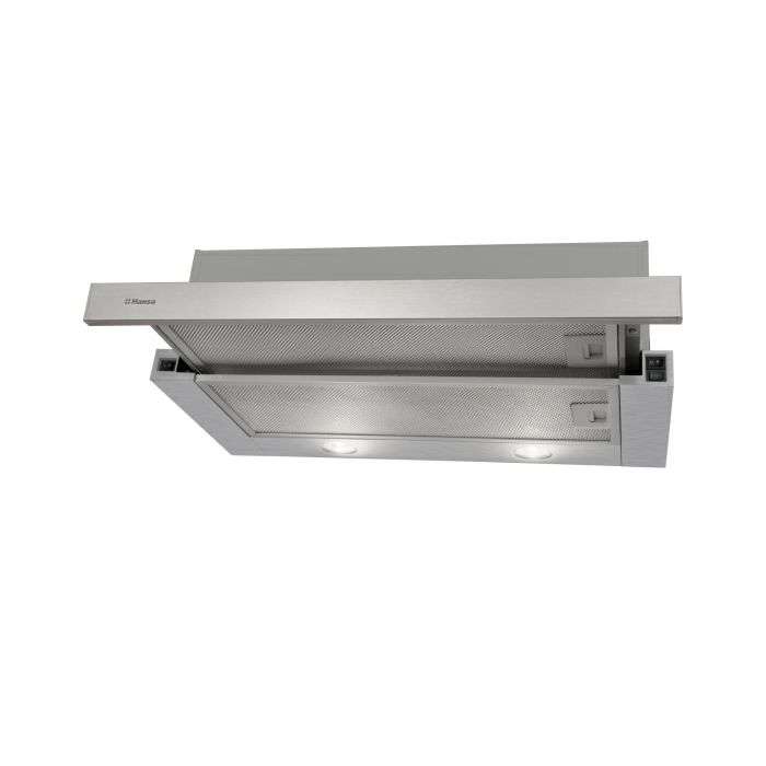 Hansa OTP6243IH Teleskopska napa širine 60 cm 2 LED svjetla (4W) 3 brzine Auto start funkcija 1 motor Snaga izvlačenja: 278 (m3/h) Glasnoća pri max brzini: 65 db 2 aluminijska filtera za masnoću Boja: inox