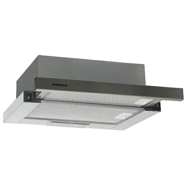 Koncar NU50LI Teleskopska napa Boja: siva/prednja inox maska Ugradnja u kuhinjski element na zid VisinaxŠirinaxDubina: 17,3x50x30/42 cm Spoj na ventilacijski otvor: 120 mm Upravljanje: vaga prekidaci Rasvjeta: 1x3W, LED Kapacitet isisavanja zraka: 189-253 m3/h (1 motor) Stupnjevi isisavanja zraka: 2 Al filtri za masnocu: 2 Max snaga: 126 W