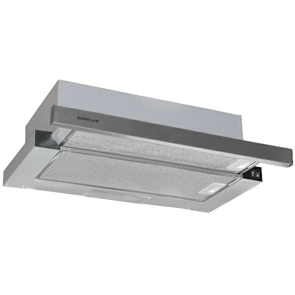 Koncar NU60LISM Teleskopska napa Boja: siva/prednja inox maska Ugradnja u kuhinjski element na zid VisinaxŠirinaxDubina: 17,4x60x30,5/43 cm Spoj na ventilacijski otvor Upravljanje: vaga prekidači Rasvjeta: 1x3W, LED Kapacitet isisavanja zraka: 189-253 m3/h (1 motor) Stupnjevi isisavanja zraka: 2 Al filtri za masnoću: 2 Max snaga: 128 W