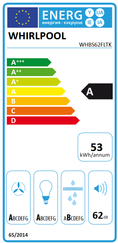 Razred energetske učinkovitosti: A Razred učinkovitosti dinamike tekućine: A Razred učinkovitosti filtriranja masnoće: B Razred učinkovitosti rasvjete: A Ukupna godišnja potrošnja energije (kWh): 52.8 Razina buke (dB(A)): 62 Ukupna snaga svjetiljki (W): 5 Maksimalna ekstrakcija zraka (m3/h): 581 Maksimalni izlazni recirkulacijski zrak (m3/h): 320 Bezpovratna zaklopka zraka Zvučna snaga na max. brzini (2010/30/EU): 62 Oblik: T-box Touch control Vrsta korištenih lampica: LED Broj svjetala: 2 Broj postavki brzine: 4 Napon električnih instalacija (W): 180 Dužina električnog kabela (cm): 150 Materijal filtra za masnoću: perivi aluminijski Vrsta kontrole svjetlosti: On/Off Visina (cm): 114.7 Širina (cm): 59.8 Dubina (cm): 45.0 Visina proizvoda, bez dimnjaka (mm): 310