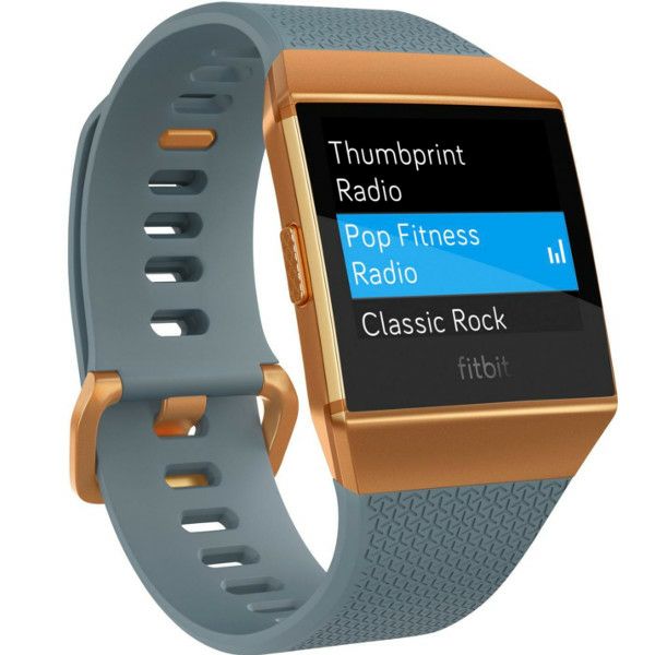 Fitbit Ionic, Slate Blue/Burnt Orange- pametni sat ima ugrađen GPS i NFC- napredni senzor za praćenje otkucaja srca, vodootporan je do 50 metara. Pokazuje potrošene kalorije, prijeđenu udaljenost te bilježi detaljnu rutu koju ste prešli biciklom, pješke ili nekim drugim prijevoznim sredstvom. Bilježi plivanje u bazenu s brojem prijeđenih krugova, trajanjem i potrošenim kalorijama. Automatski prati vježbe popust sporta i aerobika. Ima vođene vježbe disanja. Prati sve faze spavanja. Smart notifikacije - pozivi, poruke i događaji upisani u kalendar. Ima 2,5 GB interne memorije na koju je moguće pohraniti oko 300 glazbenih datoteka kojima je moguće pristupiti preko Bluetooth slušalica. Sat ima aluminijsko kućište (6000 series), a zaslon je od oštećenja zaštićen Gorilla Glass 3 staklom. Trajanje baterije 4 dana. Operativni sustav koji pokreće Ionic razvijen je u Fitbitu, a kompatibilan je s iOSom, Androidom i Windowsima. Dolazi sa S i L remenom za sat, kablom za punjenjete i Fitbit Ionic trackerom.