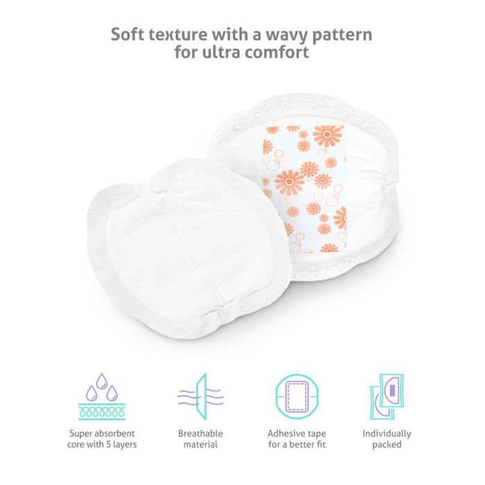 Dojenje je vrlo korisno i za bebu i za majku iz više razloga, no s vremena na vrijeme vas može dovesti u ne tako povoljne situacije. TrueLife Nutrio Breast Pads Premium spasit će vas od takvih trenutaka. Njihova super upijajuća jezgra s 5 slojeva može zadržati do 120 ml mlijeka, tako da ne morate brinuti o mrljama na odjeći. Gornji sloj od finog pamučnog materijala s netkanim valovitim uzorkom je dodatno prozračan, mekan i održava kožu suhom i zaštićenom. Umeci su tanki samo 1 mm, ali su potpuno diskretni i nenametljivi. Naći ćete ih pojedinačno zamotane u paketima od 50 ili 100, ali svaki uložak ima ljepljivu traku za brzo i jednostavno pričvršćivanje, što neće oštetiti rublju.