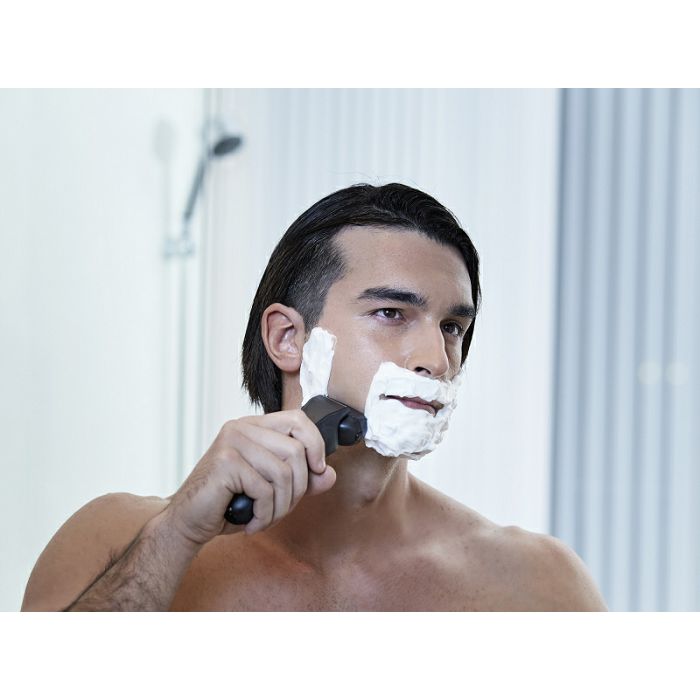 Štapni trimer, praktičnost mokrog i suhog brijanja, periva u perilici Oštrica trimera pod oštrim kutom od 45° osigurava nezahtjevnu pripremu za brijanje i jednostavno, precizno podrezivanje zalisaka i brkova. Uživajte u pogodnostima suhog brijanja ili se počastite gelom ili pjenom za brijanje i uživajte u savršeno glatkom brijanju. Zahvaljujući vodootpornom dizajnu, aparat za brijanje se može prati pod tekućom vodom, što osigurava jednostavno i higijensko održavanje.