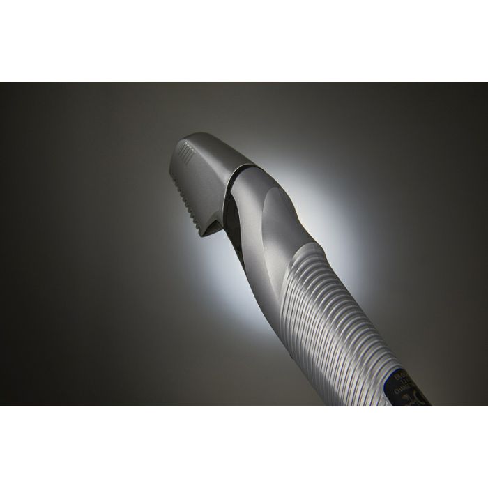 Glava u obliku slova V Glava ima fini V-oblik, tako da lako i precizno brije i teško dostupne dijelove tijela bez oštećenja kože. Navedena vodootpornost omogućuje vam da upravljate dlačicama tijekom tuširanja. Lako se pere izravno vodom pa je održavanje higijensko i jednostavno.