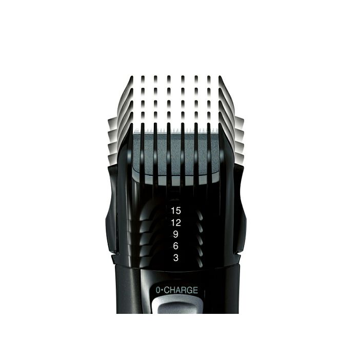 Multifunkcionalna mašinica za šišanje cijelog tijela, Mokra i suha upotreba, opran, 100% vodootporan, 4 priloga, Trimer za kosu i bradu 0,5 mm svaki, 3-15 mm u 5 koraka, Nastavak za tijelo, pazuh i intimno područje, Trimer za dlačice u nosu/ušima, Oštrica od nehrđajućeg čelika, Stanica za punjenje.