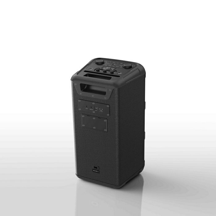 Ugrađena snažna baterija omogućuje rad zvučnika do 10 sati - Digitalno pojačalo (stereo) - 150 W RMS - 2x 14 cm subwoofer za naglašen bas - Bass Reflex priključak - Bluetooth® - USB reprodukcija - Karaoke - 1 USB - 1 AUX - 1 uključivanje - 1 ulaz za gitaru - 1 ulaz za mikrofon - okomito i vodoravno postavljanje zvučnika - 7 efekata boja