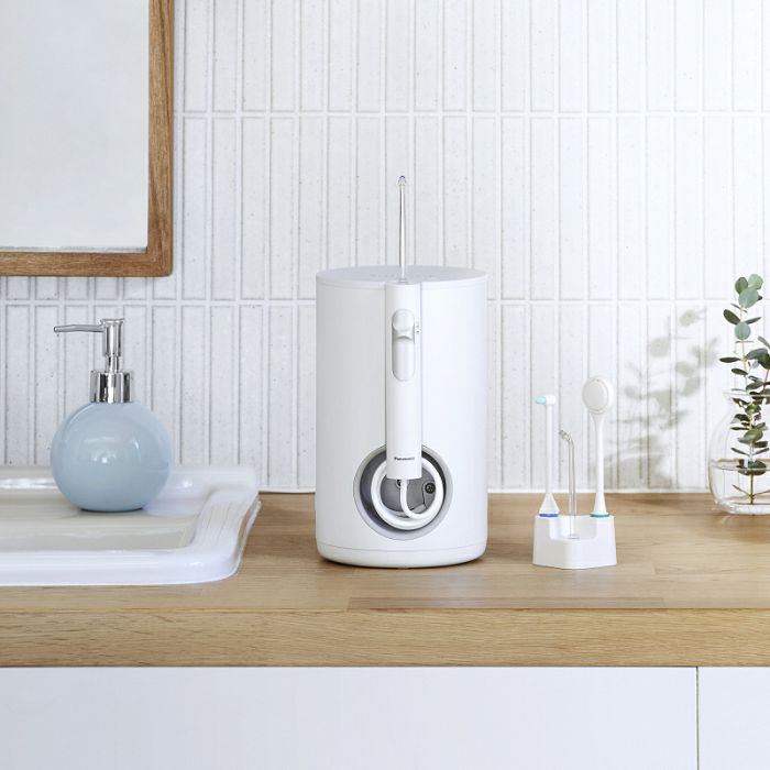 oralni irigator s ultrazvučnom tehnologijom, 4 mlaznice za različite potrebe (2 ultrazvučne mlaznice, 1 ortodontski nastavak za nositelja stomatoloških aparata, 1 mlaznica za njegu jezika), cca. Tlak vode 647 kPa, podesiv tlak vode, duže vrijeme korištenja do 180 s, veliki spremnik za vodu od 600 ml, magnetska ručka, dječji način rada, spremnik za vodu koji se može prati u perilici posuđa.