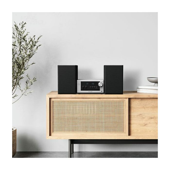 PM702 je moderan mikro sustav s CD playerom, radiom i bežičnom reprodukcijom putem Bluetooth® veze. Tehnologija transformacije zvuka čini glazbu sjajnom - bez obzira iz kojeg izvora dolazi. Uz 80 W čistog zvuka iz para stereo zvučnika, uskoro ćete se izgubiti u glazbi.