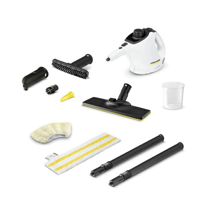 Kompaktni Kärcher SC 1 EasyFix parni mop 2-u-1 (sa setom za čišćenje podova) može se koristiti bilo gdje u kućanstvu i čisti bez upotrebe kemikalija. Temeljito čišćenje s Kärcher parnim čistačem uklanja 99,999% virusa* i 99,99% svih uobičajenih kućanskih bakterija** s tipičnih kućanskih tvrdih površina. Zahvaljujući svojim kompaktnim dimenzijama, uređaj je idealan za brzo i temeljito međučišćenje. Kada završite, može se pohraniti tamo gdje je potrebno, a da ne zauzme puno prostora. Bilo da se radi o čišćenju armatura, pločica, ploča za kuhanje, napa ili najmanjih pukotina i udubljenja – snažna para i opsežan izbor dodataka osiguravaju besprijekorne rezultate. Zahvaljujući setu za čišćenje podova EasyFix, praktični ručni parni čistač može se pretvoriti za čišćenje podova u nema vremena. Čak se i tvrdokorna prljavština i naslage masnoće uklanjaju u trenu.