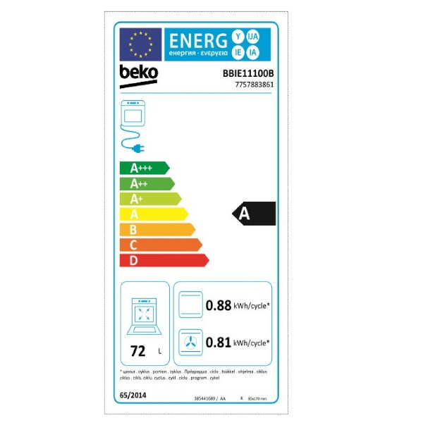 Pečenje uz pomoć ventilatora Konvencionalno pečenje Broj funkcija: 6 Kapacitet: 72 l Broj standardnih pladnjeva za pečenje: 1 Žičana rešetka Visina: 59.5 cm Širina: 59.4 cm Dubina: 56.7 cm Energetska klasa: A Boja: crna