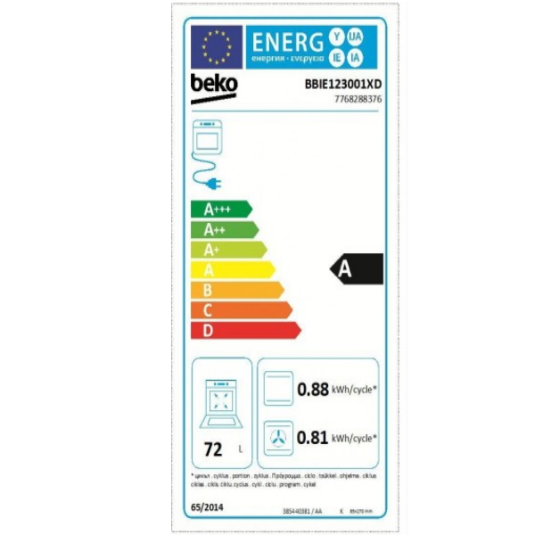 Beko BBIE123001BD Ugradbena pećnica Visina: 59.5 cm Širina: 59.4 cm Dubina: 56.7 cm Broj funkcija: 6 LED Display - Touchcontrol Zapremnina pećnice: 72 l Razred energetske učinkovitosti: A Čišćenje parom: SteamShine Boja: crna Pečenje uz pomoć ventilatora Konvencionalno kuhanje Grill Jednorazinska teleskopska polica Broj standardnih pladnjeva za pečenje: 1 Broj pladnjeva za pečenje peciva: 1 Broj žičanih rešetki: 1