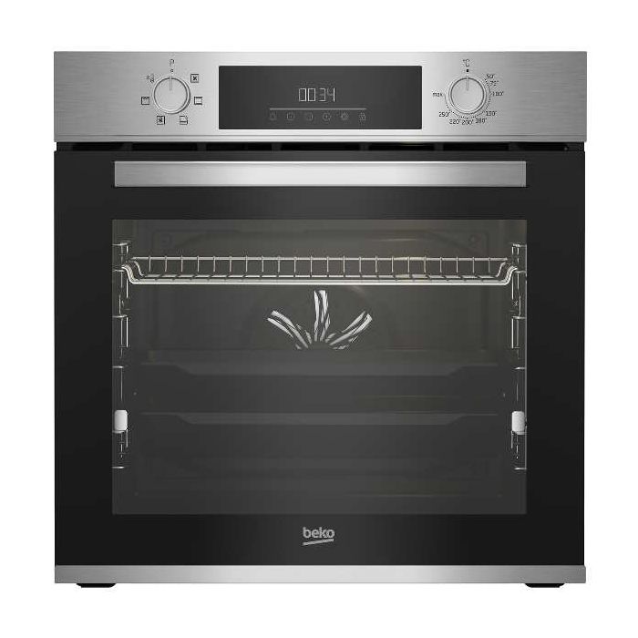 Beko BBIE123001XD Ugradbena pećnica Visina: 59.5 cm Širina: 59.4 cm Dubina: 56.7 cm Broj funkcija: 6 LED Display - Touchcontrol Zapremnina pećnice: 72 l Razred energetske učinkovitosti: A Čišćenje parom: SteamShine Boja: nehrđajući čelik Pečenje uz pomoć ventilatora Konvencionalno kuhanje Grill Jednorazinska teleskopska polica Broj standardnih pladnjeva za pečenje: 1 Broj pladnjeva za pečenje peciva: 1 Broj žičanih rešetki: 1