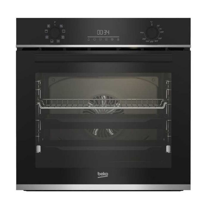 Beko BBIR13300XC Ugradbena pećnica Visina: 59.5 cm Širina: 59.4 cm Dubina: 56.7 cm Broj funkcija: 8 LED Display - Touchcontrol Zapremnina pećnice: 72 l Razred energetske učinkovitosti: A Čišćenje parom: SteamShine Multi-functional Boja: nehrđajući čelik Odmrzavanje Pečenje uz pomoć ventilatora Konvencionalno kuhanje Grill Jednorazinska teleskopska polica Broj standardnih pladnjeva za pečenje: 1 Broj pladnjeva za pečenje peciva: 1 Broj žičanih rešetki: 1